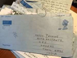 Whenever I went away – travelling in India and the USA, or living in France and Chicago, and at university in Liverpool – I wrote long letters home about my experiences, and my mother (and occasionally my father) wrote regularly to me, sending their mail to Postes Restantes in different towns, or care of friends, not always certain they would reach me.
